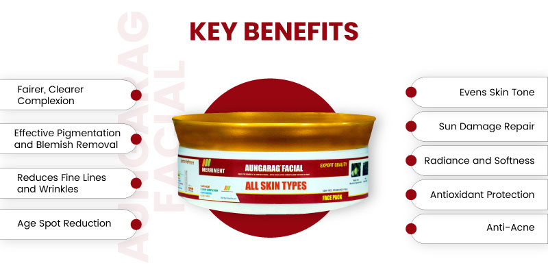 •  Fairer, Clearer Complexion : Achieve a fairer and clearer complexion by using Aungarag Facial. It deeply cleanses the skin, removing impurities and excess oil, resulting in a visibly brighter skin tone.