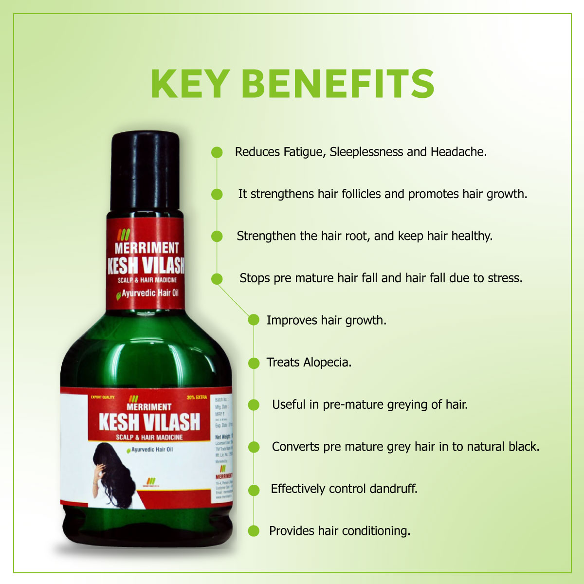 Side effects: Kesh Vilash hair oil is not known to have any side effects.